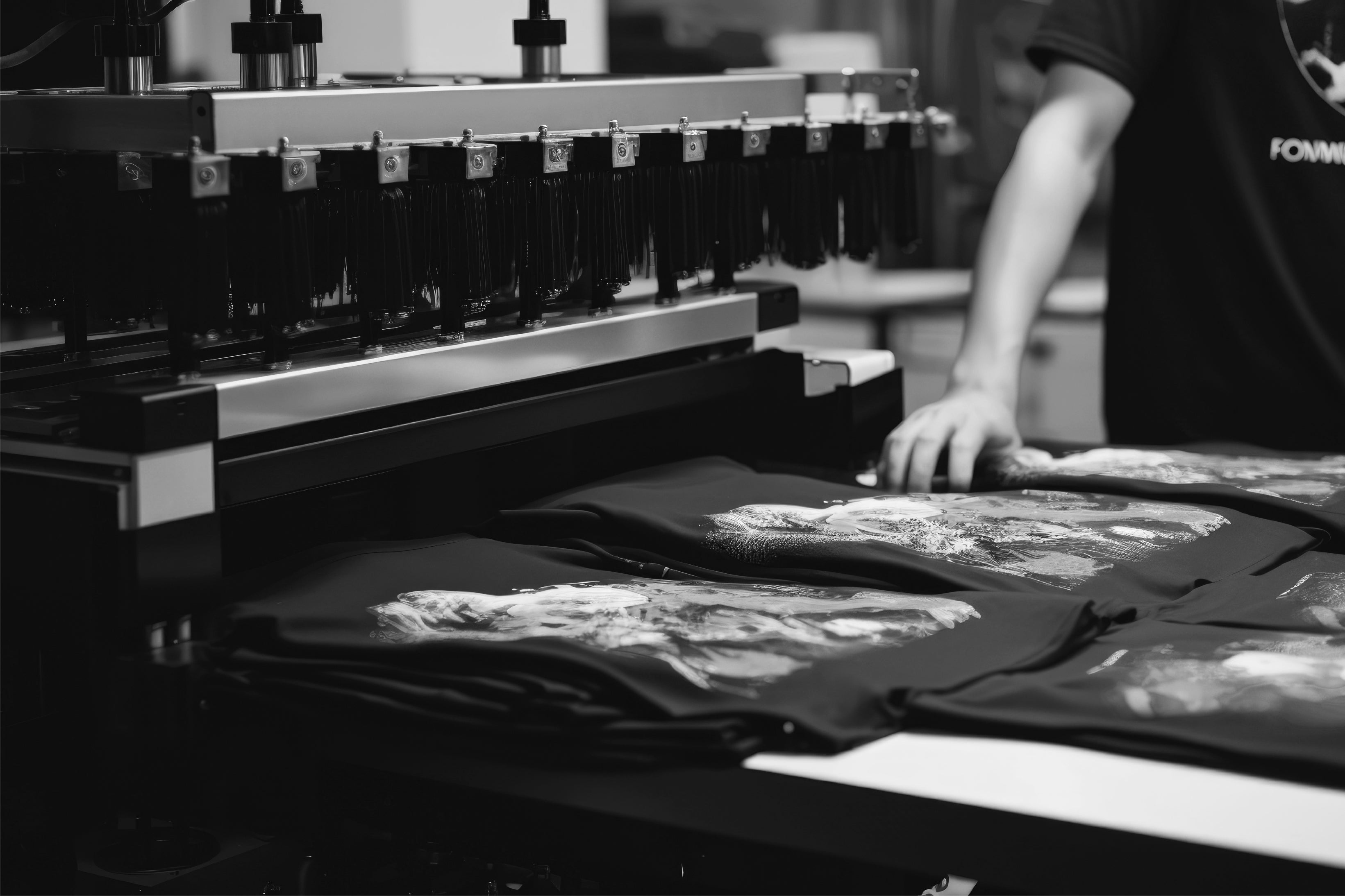 數位直噴是一種精細印刷技術,將墨水直接噴印於布料上,適合小量訂製。DTG 可印製出複雜的漸層與細緻圖案,特別適合對細節有高標準的品牌。
