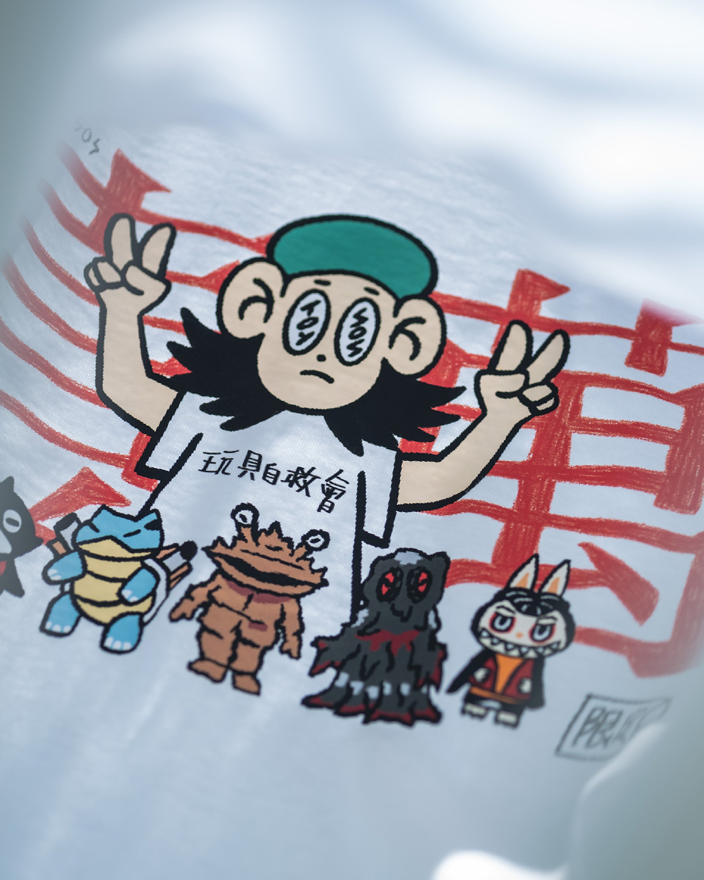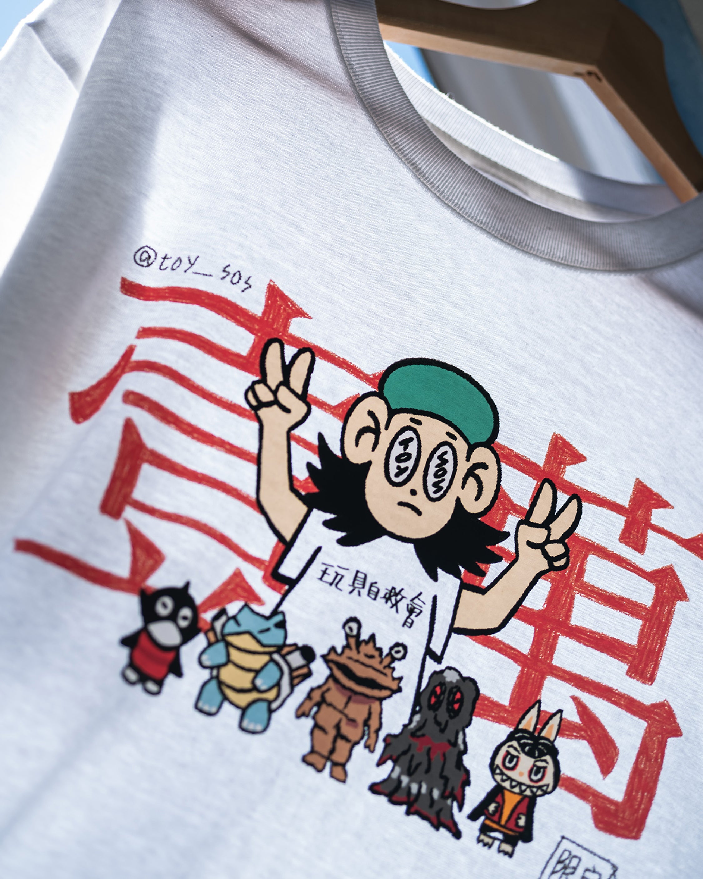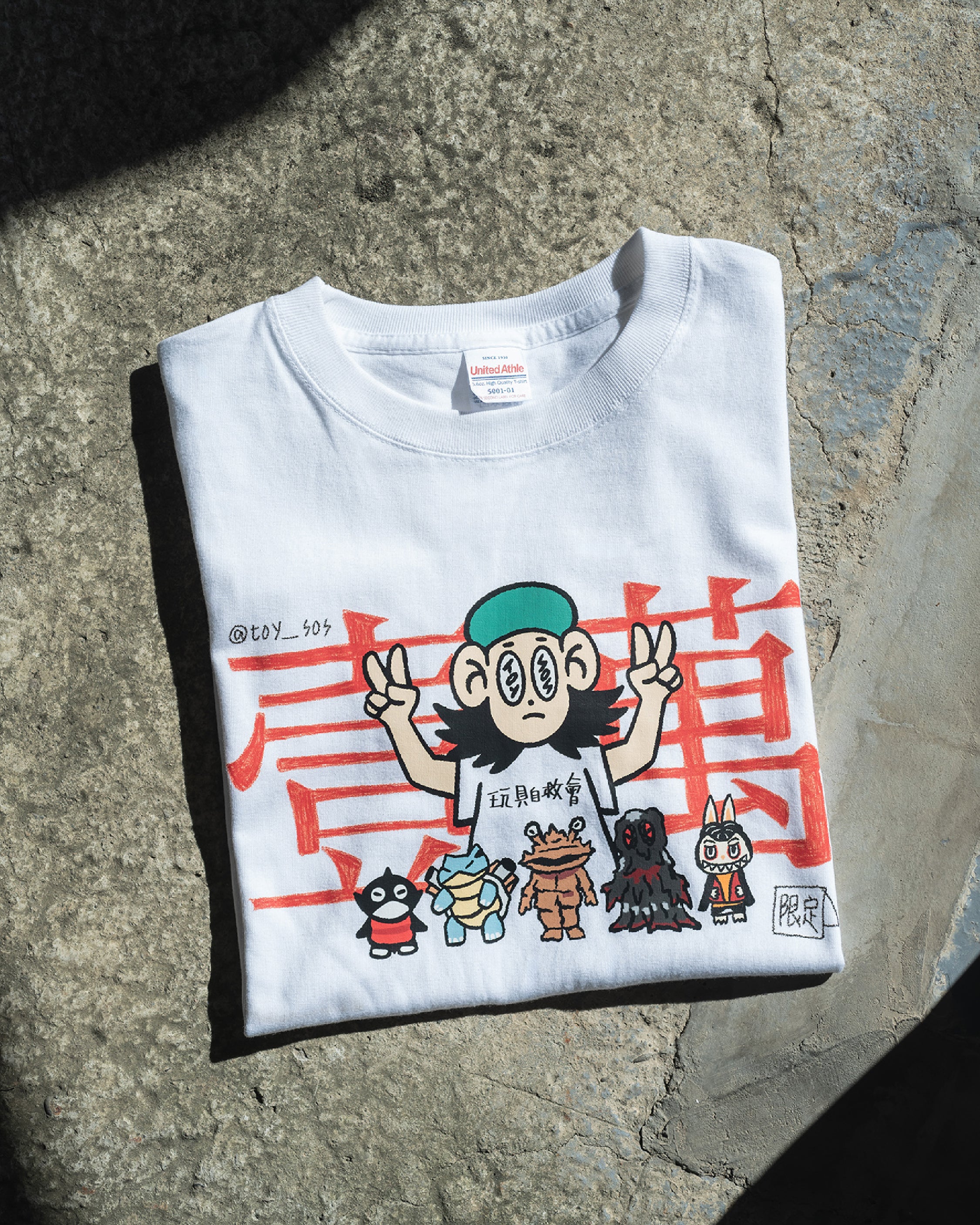 此次玩具自救會選用 #UnitedAthle 經典中性款式 #3500101,並採用 #DTF熱轉印 工藝,完美呈現原始手繪筆觸的細節與層次感。