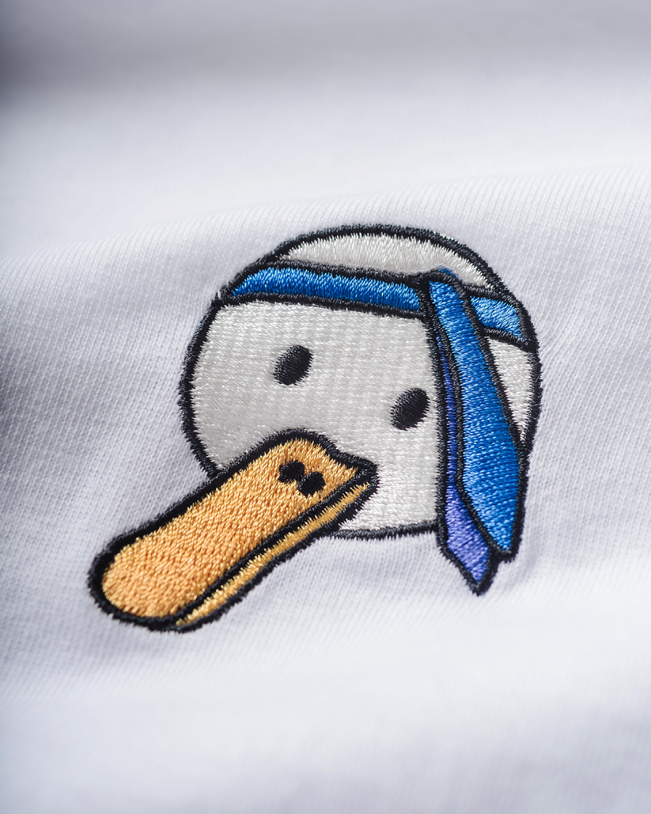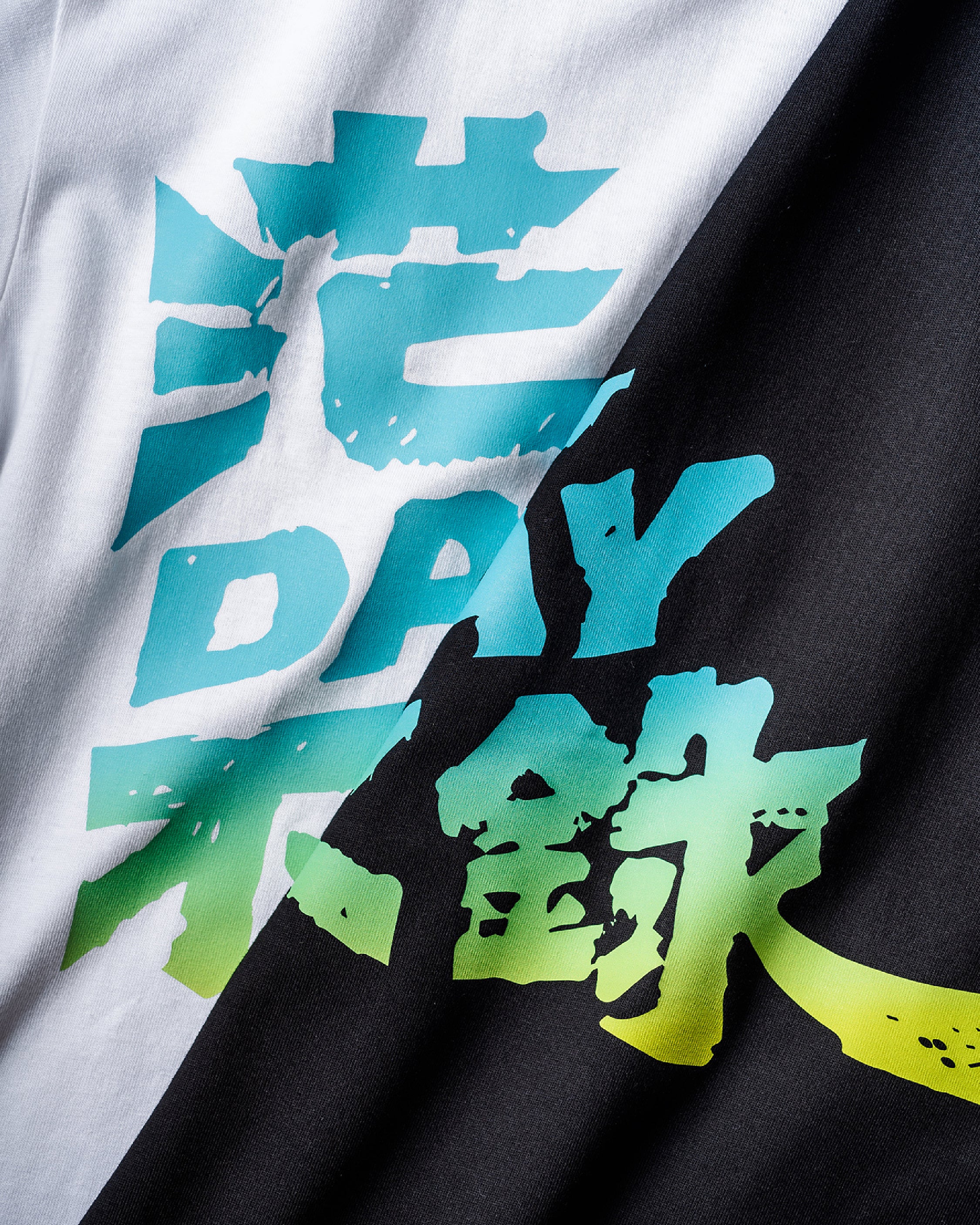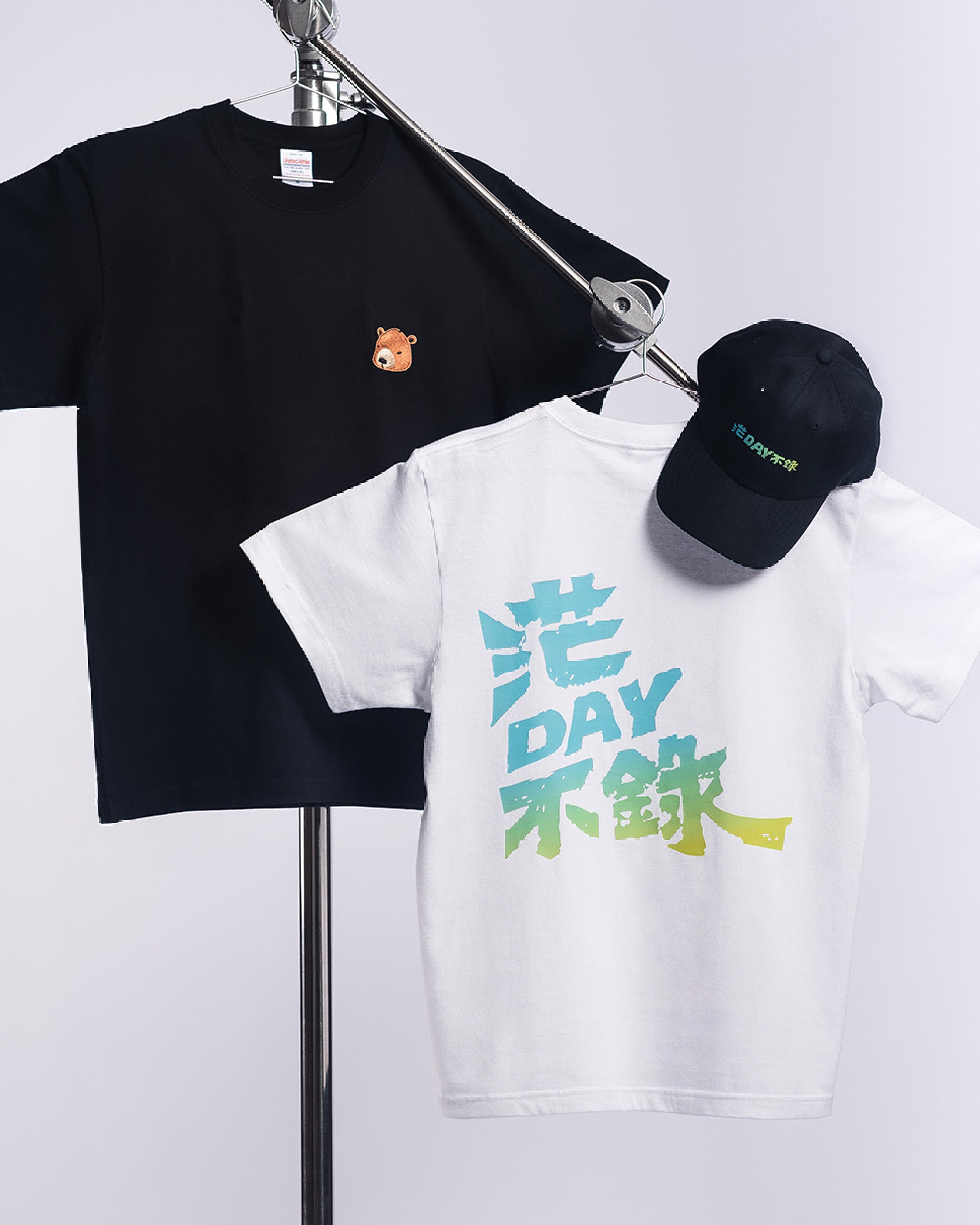 茫 day 不錄此次製作兩款商品,分別是短袖 T-shirt 和棉質老帽。短袖 T-shirt 選用 #UnitedAthle 經典中性款式 #3500101,背面採用大面積 #DTF熱轉印 呈現漸層色塊,細節清晰,視覺張力十足;正面則搭配 #電腦繡花 工藝,完整呈現角色圖案。老帽則選用 #UnitedAthle #3967001 棉質斜紋織布老帽,並結合 #DTF 熱轉印 呈現漸層 LOGO,簡潔有型。