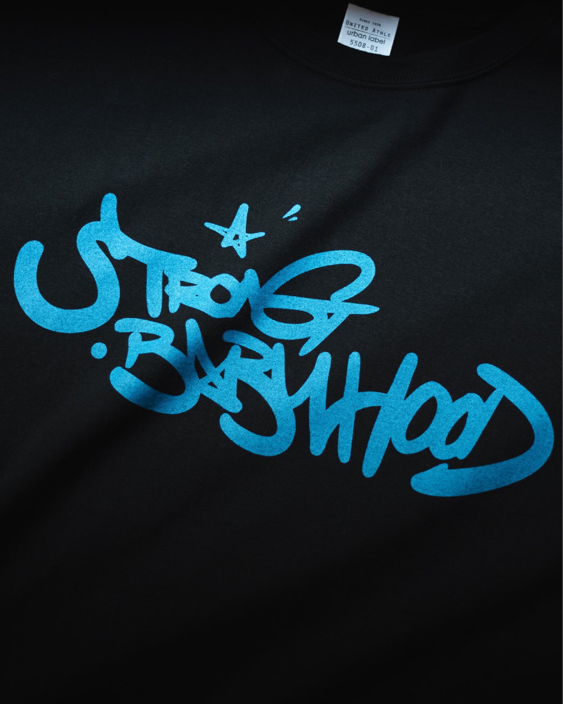 兩色短 T 則選用 #UnitedAthle 頂級柔棉系列 #3500101,精選高品質純棉面料,觸感親膚且領口加固設計,確保多次洗滌仍耐洗耐穿、不易鬆脫變形。印刷工藝則採用專業 #網版印刷 搭配 #奈米膠,採用 #半水半膠 的獨特質地,在色彩飽和與清透感之間取得平衡,其具備超強附著力,圖案服貼耐拉伸,即便頻繁穿著亦能維持如新。